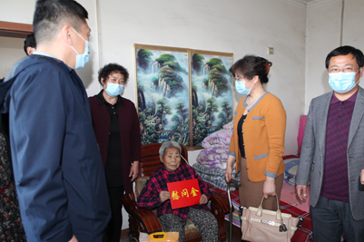 座談會后,李光紅副校長帶領(lǐng)工作組成員慰問了小莊村獨居老人張文華。張文華老人今年85歲,獨身一人,生活十分困難。疫情期間,“四進”工作組協(xié)同村委人員,每日到張文華老人家消毒噴殺、測量體溫、配送蔬菜糧油等生活用品。這次工作組給張文華老人送來了慰問金、牛奶、米面等慰問品,李光紅副校長還與老人拉家常,了解日常生活情況,叮囑老人保重身體。