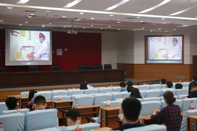 “開學第一課”現場教學分為兩個階段。第一個階段是現場教學,學校黨委學生工作部(處)副部(處)長劉芝以“厚植家國情懷 詮釋責任擔當”為主題,從“嚴管彰顯厚愛、堅守紀律意識和規矩意識”開講,圍繞“彰顯制度優勢和治理效能”“提供中國智慧和中國方案”“展現中國精神和中國力量”“涌現時代責任和青年擔當”四個方面,通過大量詳實的統計數據和生動鮮活的感人事例為同學們講述了疫情大考中的國家響應和全民行動,彰顯出的中國精神、中國力量、中國速度、中國效率和中國溫度,引導學生樹立正確的人生觀、價值觀,厚植愛國主義情懷,強化制度認同。第二個階段是觀看教學視頻。返校研究生和全體輔導員一起觀看了學校特別制作的《新冠肺炎基本知識》《六步洗手法》《含氯消毒液的配制和使用》《口罩的正確選用和使用》《疫情防控應急演練》等視頻,進一步增強了對疫情防控知識和技能的了解和掌握。通過現場教學和觀看視頻,做到疫情防控知識與愛國主義教育相結合。