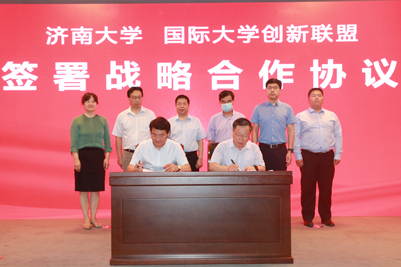 儀式上,張士強校長與孫萬松秘書長共同簽署“濟南大學與國際大學創新聯盟戰略合作協議”。雙方共同啟動“自動駕駛國際產業研究院、國際合作辦學,國際健康生命社區建設,山東泰山黃河文化研究”合作項目。