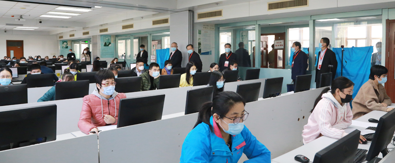 劉興云廳長一行先后實地查看了信息樓考場內考生考試情況,詳細了解疫情防控、考場設置、報考人數、實考人數、考點考務等相關情況,認真聽取了學校準備工作的情況匯報。劉興云廳長對濟南大學在疫情防控期間能夠克服種種困難組織好本次考試表示感謝,對本次考試的準備和保障工作表示肯定,強調要精心組織、嚴格要求,要本著對考試、對社會負責的態度,認真做好考試服務,確保考務工作零差錯,要按照國家考試的相關規定,嚴肅考風考紀,確保考試公平公正。