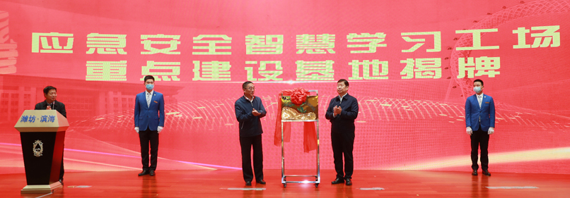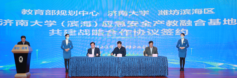 啟動儀式上,教育部學(xué)校規(guī)劃建設(shè)發(fā)展中心、濰坊市濱海經(jīng)濟(jì)開發(fā)區(qū)、濟(jì)南大學(xué)共同簽訂了濟(jì)南大學(xué)(濱海)應(yīng)急安全產(chǎn)教融合基地戰(zhàn)略合作協(xié)議。與會領(lǐng)導(dǎo)分別為“應(yīng)急安全智慧學(xué)習(xí)工場重點(diǎn)建設(shè)基地”、“山東省應(yīng)急安全產(chǎn)教融合平臺”、“濟(jì)南大學(xué)應(yīng)急管理學(xué)院”揭牌。