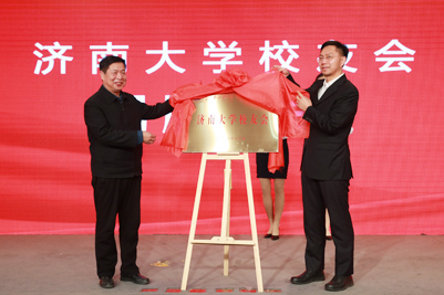 山東省教育廳副廳長戴龍成同志與校黨委書記徐景顏共同為“濟南大學校友會”揭牌。