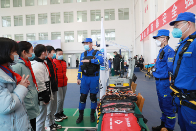 啟動儀式結(jié)束后,與會人員現(xiàn)場參觀了宣傳教育活動現(xiàn)場集中展示的安檢、排爆、警械等反恐裝備,觀摩了濟南大學(xué)保安隊員的盾牌操、處置發(fā)現(xiàn)疑似爆炸物、突發(fā)火情和市中區(qū)特警處置刀斧砍殺四個科目演練。活動現(xiàn)場,公安民警講解了校園常見恐襲方式和應(yīng)對處置方法,應(yīng)急救援人員演示了消防救援和緊急避險技能,醫(yī)護人員進行了急救技能展示,師生逐個體驗,“零距離”互動,收到良好效果。