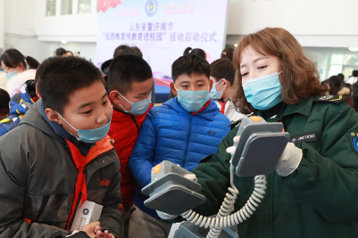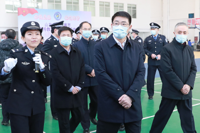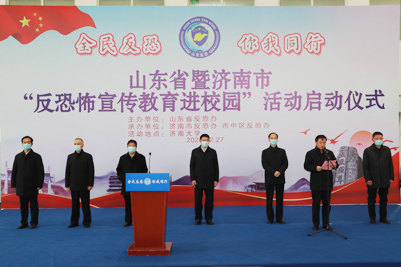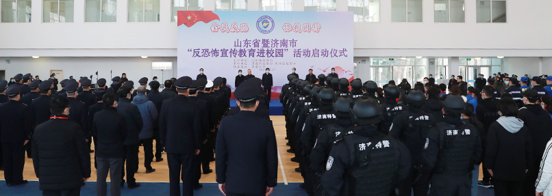 12月27日上午,山東省暨濟南市“反恐怖宣傳教育進校園”活動啟動儀式在我校舉行。副省長、省公安廳廳長、省反恐怖工作領(lǐng)導(dǎo)小組副組長范華平出席并宣布宣傳活動啟動。省委宣傳部副部長魏長民,學(xué)校黨委書記徐景顏,省公安廳副廳長、省反恐辦主任修濰青,濟南市副市長、市公安局局長、市反恐怖工作領(lǐng)導(dǎo)小組副組長吳德生,市中區(qū)區(qū)委書記韓永軍,學(xué)校副校長楊景波、副校長張勇出席活動。省教育廳和濟南市有關(guān)反恐成員單位負責(zé)同志,市公安局相關(guān)警種和各分、縣局負責(zé)同志,學(xué)校師生代表、志愿者、應(yīng)急救援力量等共約300余人參加活動。濟南市委常委、政法委書記、市反恐怖工作領(lǐng)導(dǎo)小組組長秦傳濱主持啟動儀式。