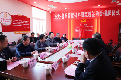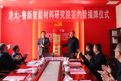 在簽約揭牌儀式上,黃加棟處長與魯新建材公司徐強總經理簽訂了雙方共建“濟大-魯新智能材料研究院”協議,劉宗明副校長與濟鋼集團苗剛總經理為“濟大-魯新智能材料研究院”揭牌。