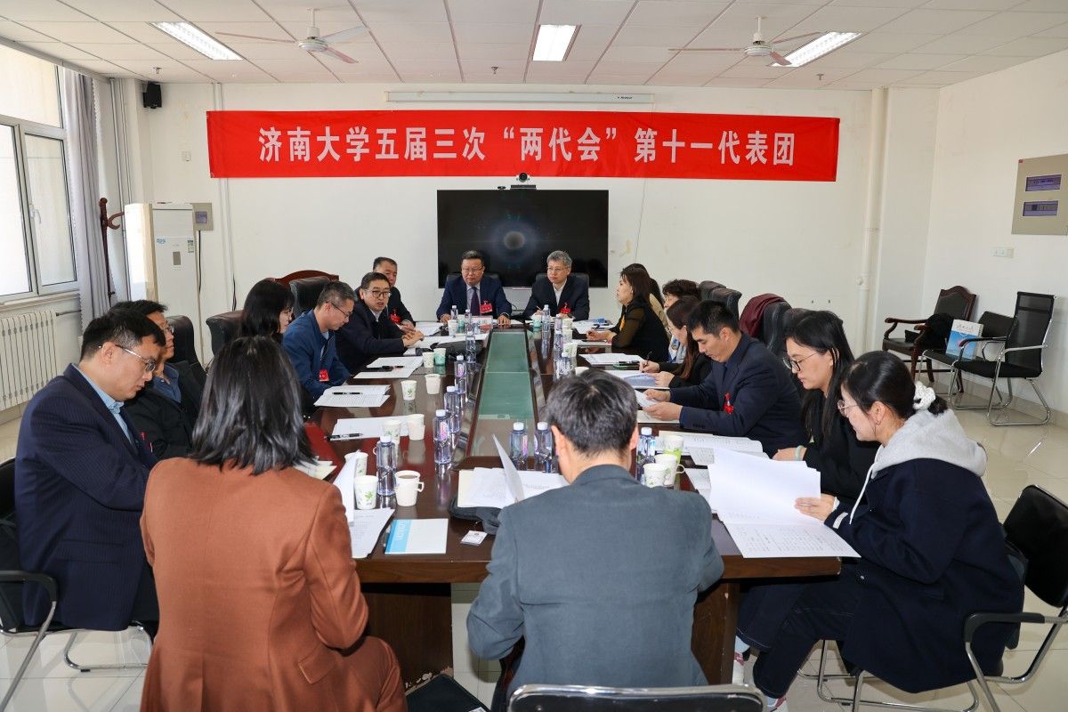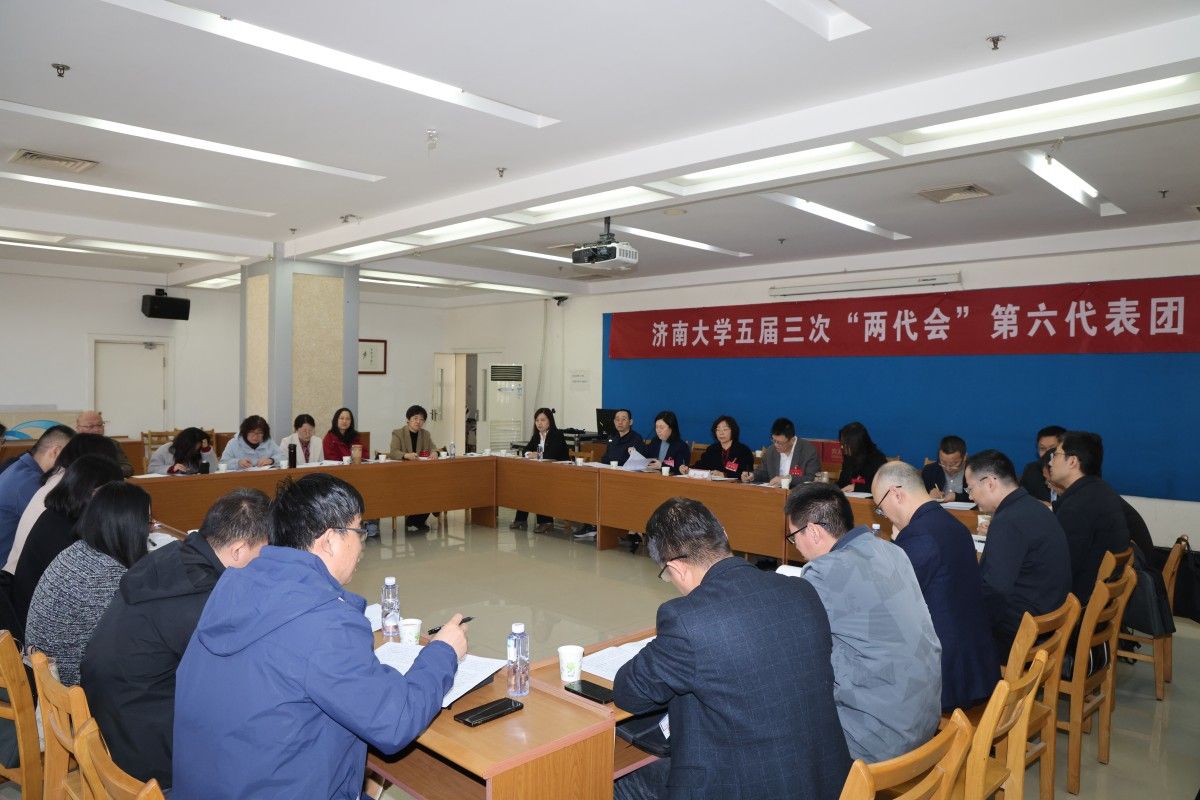 隨后,各代表團就《學校工作報告》《濟南大學第五屆教代會第二次會議提案辦理情況報告》《濟南大學關于2024年度財務決算和2025年度財務預算方案的報告》《工會工作報告》《工會經費審查報告》《濟南大學校園總體規劃修編》進行了認真地討論和審議,積極為學校的建設與發展建言獻策。