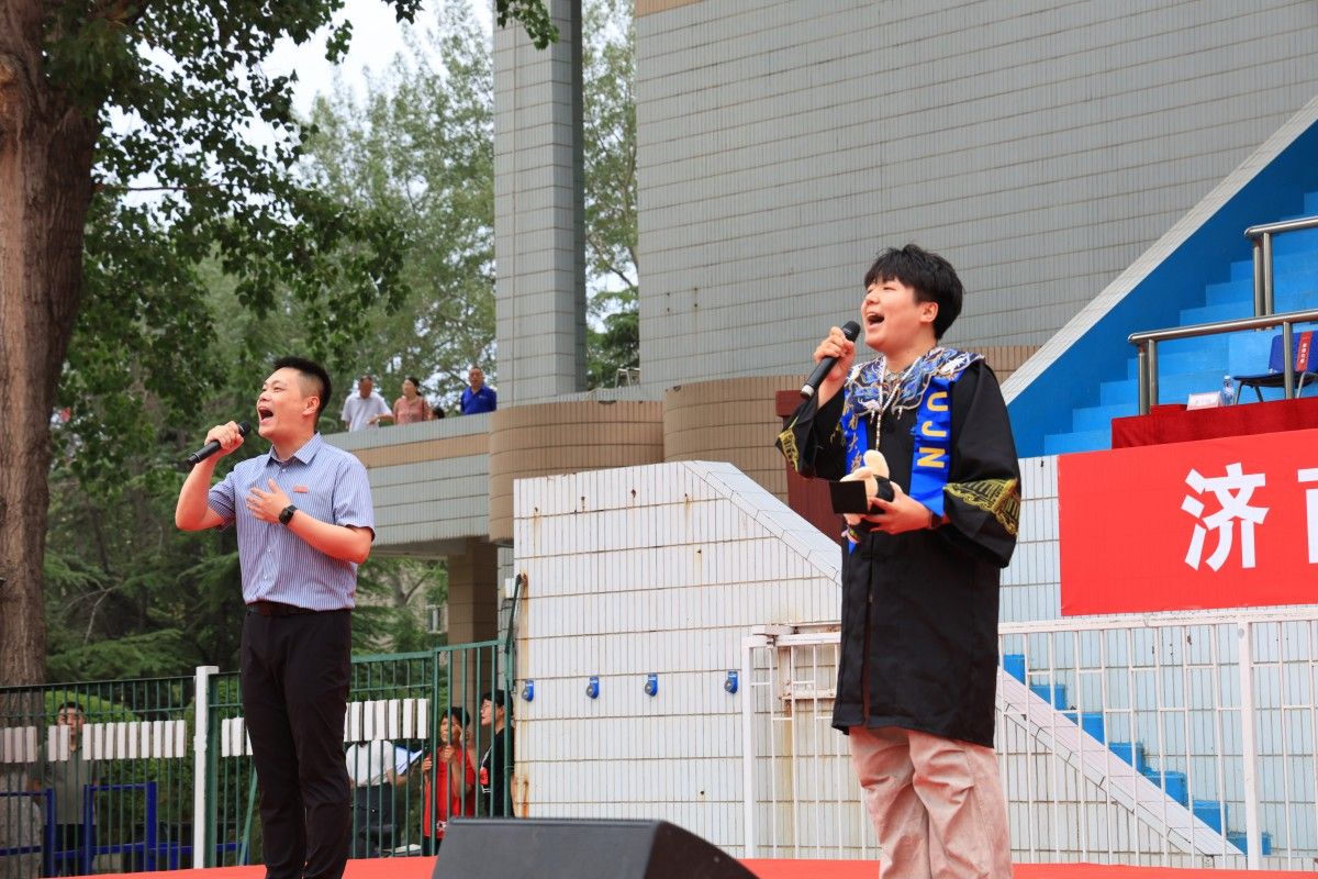 校友代表王澤強分享了在濟大的求學(xué)經(jīng)歷以及畢業(yè)后取得的突出成績,同時向?qū)W校、師長表達最誠摯的感謝。他與學(xué)弟學(xué)妹們分享三點感悟:畢業(yè)后仍要保持學(xué)習(xí)的熱情和動力,以適應(yīng)社會的發(fā)展和變化;要勇于實踐,敢于創(chuàng)新,無懼失敗,敢于突破常規(guī)思維,這樣才能在未來的工作中脫穎而出;要始終保持一顆感恩的心,感恩母校的培養(yǎng),感恩老師的教導(dǎo),感恩同學(xué)的陪伴。無論將來走到哪里,取得怎樣的成就,都不要忘記母校這片培育我們成長的沃土。