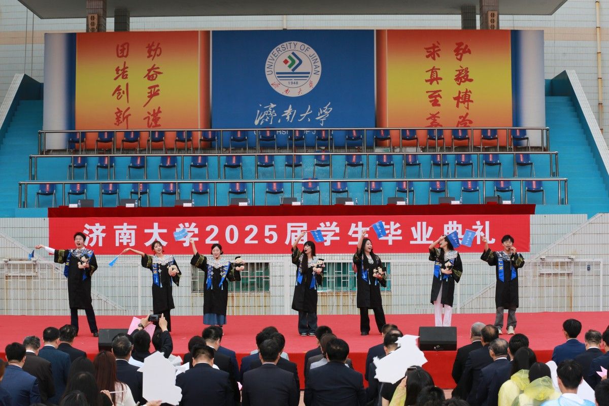 胸懷家國情,共赴新征程。6月19日,濟南大學(xué)2025屆學(xué)生畢業(yè)典禮在主校區(qū)運動場隆重舉行。9310名畢業(yè)生攜著青春記憶,帶上“濟大人”的身份,從這里出發(fā),奔赴星辰大海的新征程。