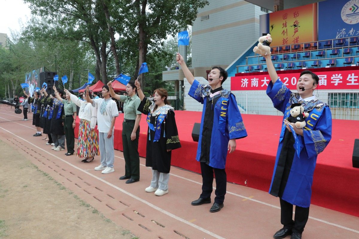 典禮開始前,精彩的舞獅表演、青春舞蹈,歌曲聯(lián)唱《你好,濟大》《親愛的你啊》《世界贈予我的》等暖場節(jié)目,點燃青春的激情與夢想,暢想青春與未來,祝福同學(xué)們成為更好的自己。