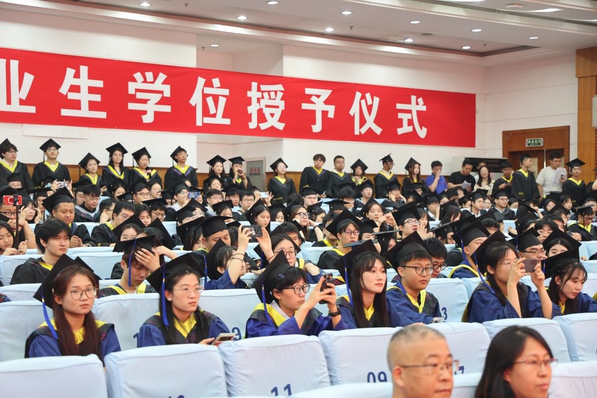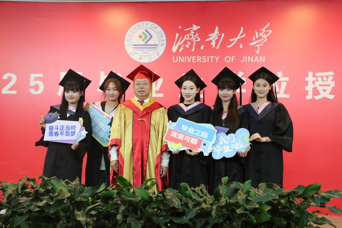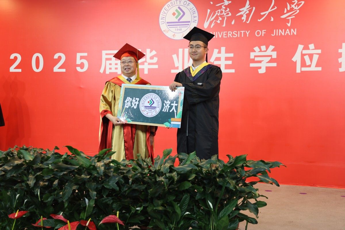 授予儀式上,各學(xué)院院長發(fā)表了深情的寄語。曾經(jīng),同學(xué)們帶著行李箱和憧憬站在校門口;如今,你們的行囊里裝著論文、各種榮譽和無數(shù)個挑燈夜讀的奮斗歷程即將離開校園。曾經(jīng),你們的目光里充滿著青澀與好奇;如今,你們攜著成長與勇氣,目光堅定地奔赴遠方。作為老師感到無比欣慰與自豪。在濟大,你們踐行著“弘毅、博學(xué)、求真、至善”的校訓(xùn),不斷錘煉品德、掌握實學(xué)、強大自我,練就一身本領(lǐng)的你們即將遠行告別母校,愿你們此去前程似錦,歸來仍是少年。