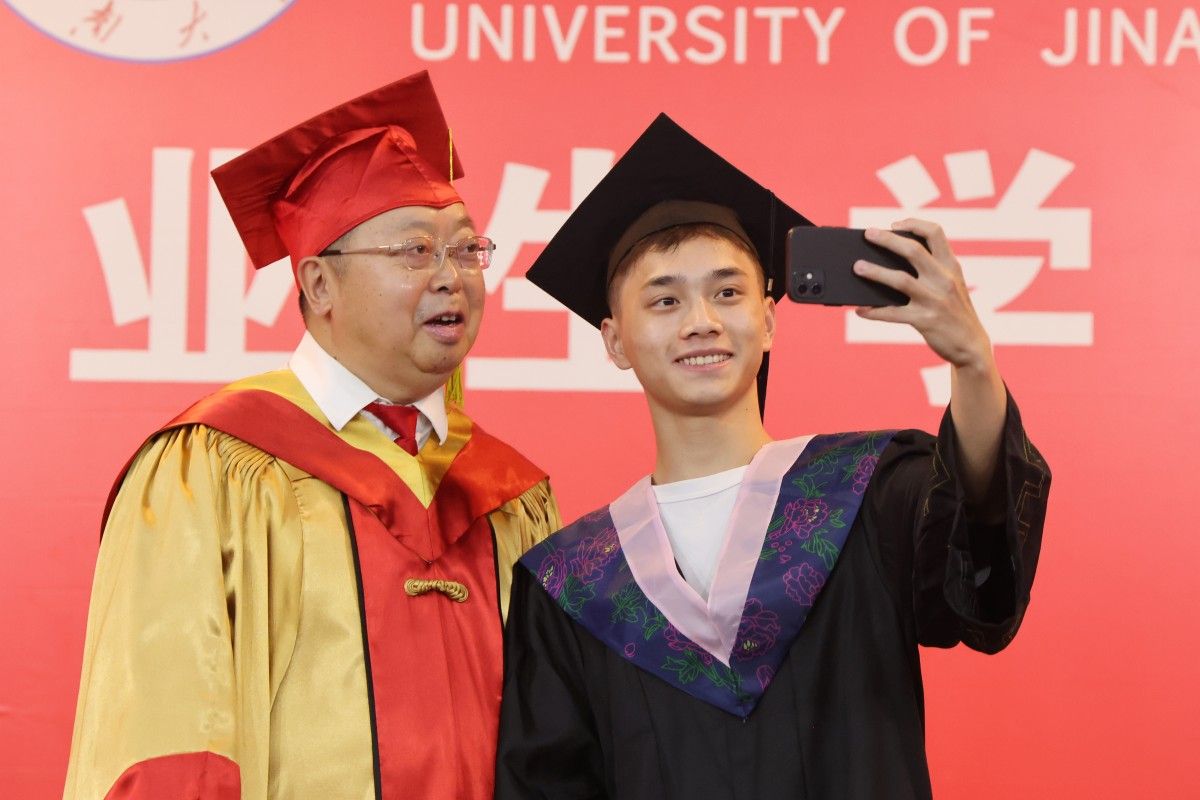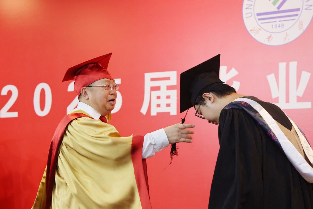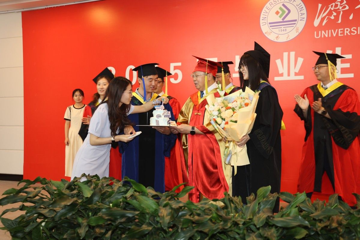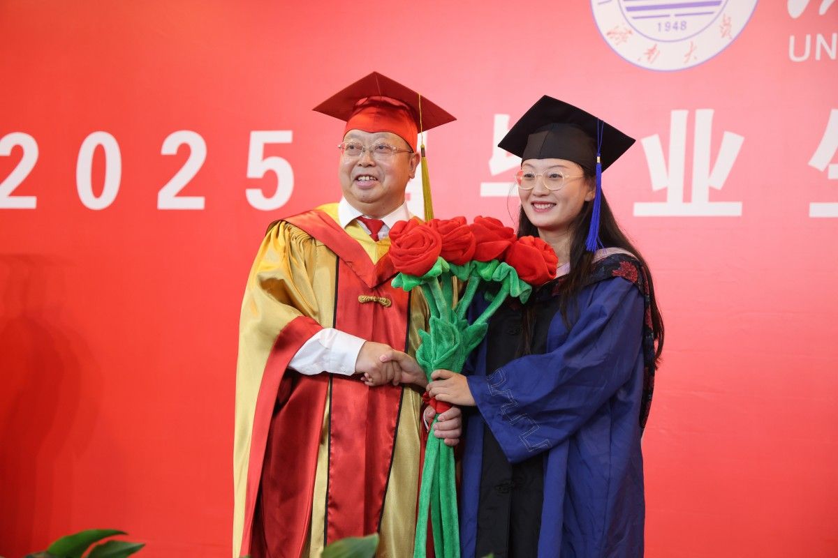 授予儀式上,各學(xué)院院長發(fā)表了深情的寄語。曾經(jīng),同學(xué)們帶著行李箱和憧憬站在校門口;如今,你們的行囊里裝著論文、各種榮譽和無數(shù)個挑燈夜讀的奮斗歷程即將離開校園。曾經(jīng),你們的目光里充滿著青澀與好奇;如今,你們攜著成長與勇氣,目光堅定地奔赴遠方。作為老師感到無比欣慰與自豪。在濟大,你們踐行著“弘毅、博學(xué)、求真、至善”的校訓(xùn),不斷錘煉品德、掌握實學(xué)、強大自我,練就一身本領(lǐng)的你們即將遠行告別母校,愿你們此去前程似錦,歸來仍是少年。