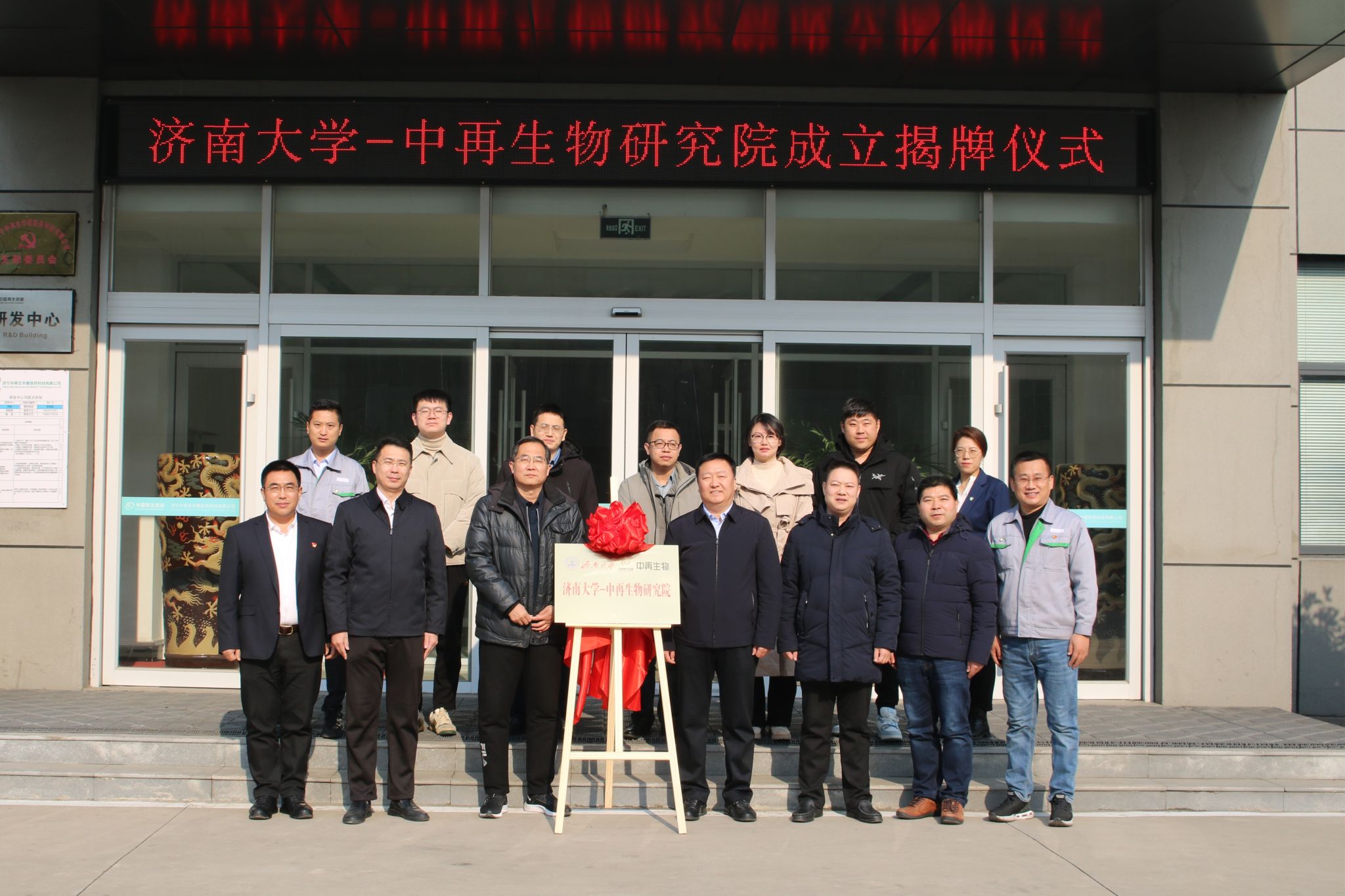 12月19日上午,濟南大學-中再生物研究院揭牌儀式在濟寧中再生華惠醫藥科技有限公司舉行。鄒城市科技局黨組成員、市科技創新服務中心主任邵長清,中再控股黨總支書記、董事長王海林,濟南大學化學化工學院黨委書記賀銘出席揭牌儀式。鄒城市經濟開發區管委會,鄒城市太平鎮政府,濟寧中再生華惠醫藥科技有限公司,濟南大學科技處、化學化工學院,及相關企業負責人參加活動,中再控股黨總支副書記、副總經理、濟寧中再生華惠醫藥科技有限公司董事長魏龍主持揭牌儀式。