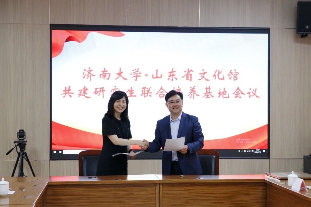 為加強音樂學院研究生聯合培養基地建設,全面提升專業學位研究生培養質量,經過前期調研與交流,4月20日,濟南大學—山東省文化館共建研究生聯合培養基地簽約及揭牌儀式在山東省文化館四樓會議室成功舉辦。山東省文化館(山東省非物質文化遺產保護中心)黨總支書記、館長、山東省非物質文化遺產保護中心主任趙新天,山東省文化館辦公室主任徐艷,濟南大學研究生院、音樂學院相關負責人及教授代表出席揭牌儀式。揭牌儀式由山東省文化館辦公室主任徐艷主持。