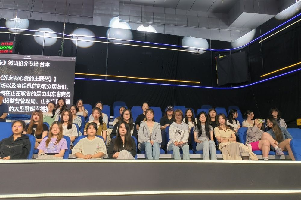 近日,文學(xué)院廣播電視學(xué)專業(yè)的一批優(yōu)秀學(xué)子,在學(xué)院專業(yè)負(fù)責(zé)人孫佳祺老師的帶領(lǐng)下,前往山東廣播電視臺開展第二批次認(rèn)知實習(xí)與課程實踐活動,參與生活頻道下“好品山東”節(jié)目錄制。本次實習(xí)活動共有51名學(xué)生參加,其中廣電2022年級22名,傳播2023年級29名,旨在深化學(xué)生對廣播電視行業(yè)節(jié)目運作流程的理解,提升專業(yè)技能和專業(yè)素養(yǎng),加強理論與實踐的結(jié)合。