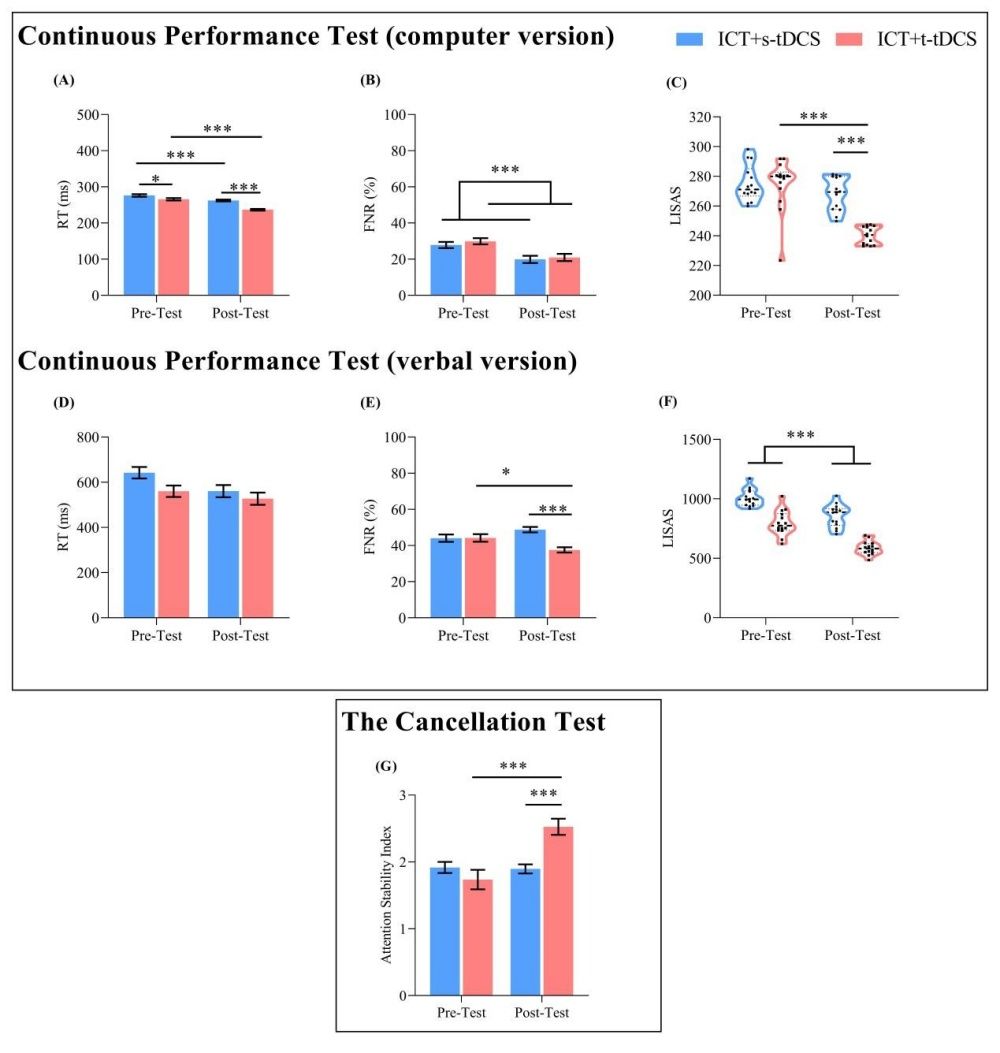 Cancellation Test前測(cè)和后測(cè)的得分(圖G)
