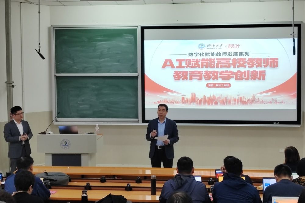 11月12日下午,商學院聯合學校教師發展中心特邀秋葉集團培訓師舉辦“AI賦能高校教師教學創新”工作坊活動。黨委教師工作部和商學院負責人、商學院全體教師參加了本次培訓活動,活動由劉毅副院長主持。