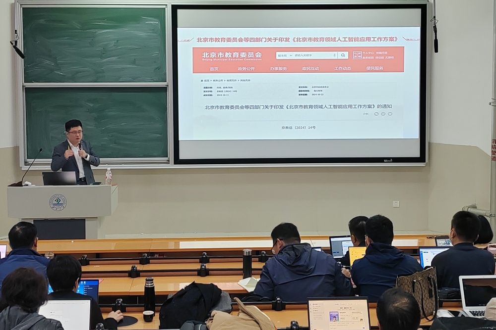 劉毅首先向全體教師傳達了學院教學質量月活動內容以及開展本次工作坊的背景和重要意義,要求教師抓住本次機會認真學習,通過人工智能賦能教學,打造更加智慧化、個性化的教學模式,并逐漸將人工智能技術滲透到課程建設和教育教學全過程。