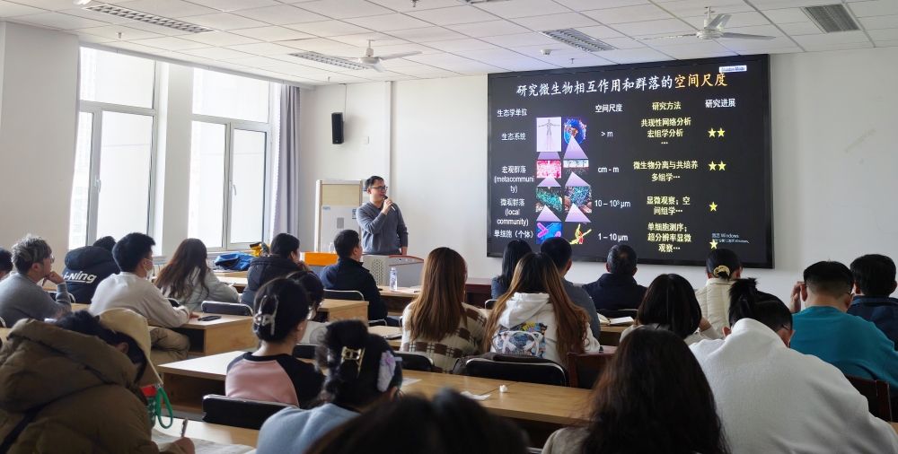 12月11日,瑞士蘇黎世聯邦理工學院博士后研究員王淼嘯應邀來生物科學與技術學院開展學術交流,并以“從單細胞水平研究微生物生態學”為題作學術報告。學院班子成員,教師代表,研究生、本科生代表參加活動。報告會由學院副院長李強主持。