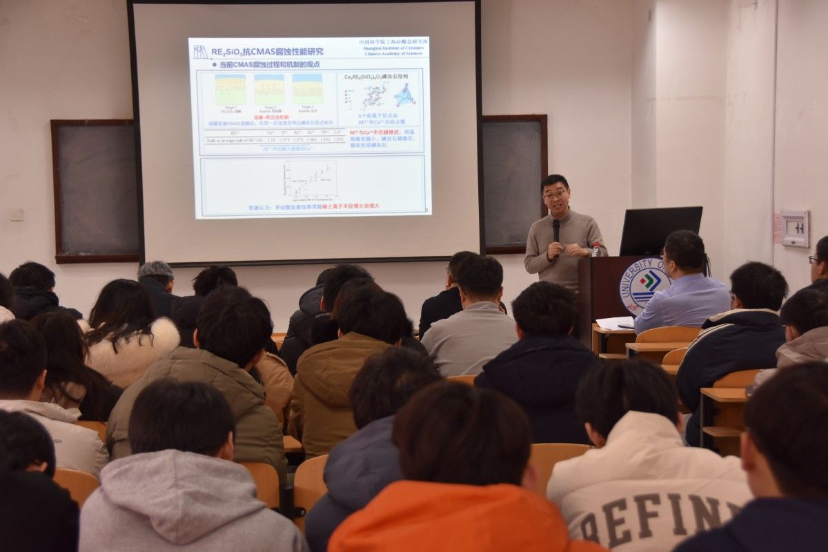 曾毅以高端航空發動機保護涂層的掃描電子顯微鏡觀測與研究視角開啟講座,從掃描電鏡應用、技術研究、設備開發等三個維度,報告了掃描電鏡技術不僅可獲取材料表面形貌、元素組成及晶體結構等信息,還可用于材料動態變化等方面的研究。同時,他還介紹了目前中國科學院上海硅酸鹽研究所在掃描電鏡關鍵裝備開發方面取得的成績,為在場的130余名師生呈現了一場融合理論深度與實踐前瞻的學術盛宴。