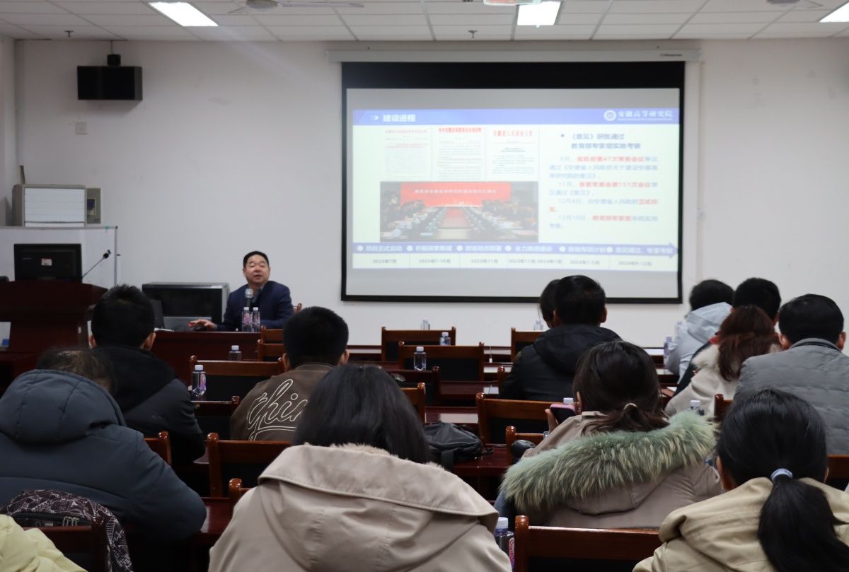 會上,黃飛以“建設(shè)教育部安徽高等研究院,推進(jìn)教育、科技、人才‘三位一體’協(xié)同融合發(fā)展”為題,系統(tǒng)闡述了教育部博士專項計劃——安徽高等研究院校企聯(lián)合科研與人才培養(yǎng)項目的建設(shè)背景、實踐路徑及未來規(guī)劃等。他從項目定位、目標(biāo)、任務(wù)及運行機(jī)制等維度展開,通過“政策-經(jīng)費-學(xué)生-條件”四位一體保障體系,描繪了實現(xiàn)區(qū)域經(jīng)濟(jì)賦能、創(chuàng)新人才培養(yǎng)和安徽特色彰顯的協(xié)同發(fā)展目標(biāo)。