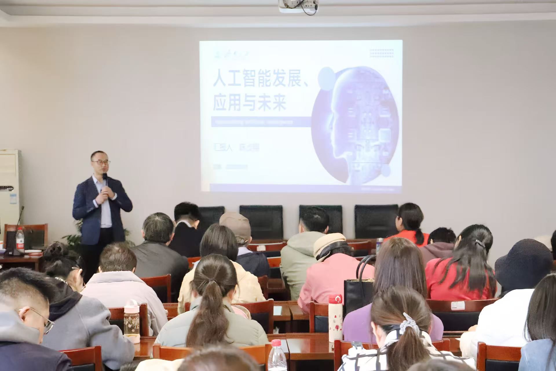在專題講座中,陳貞翔以深入淺出的方式,系統梳理了人工智能的發展脈絡。從1950年圖靈測試的提出,到2024年DeepSeek大模型的發布,通過生動案例展現了AI技術的演進歷程。他特別強調,當前人工智能已從單純的算法演進為具備自主學習能力的智能系統。在應用實踐方面,陳貞翔重點分析了大型語言模型在內容創作、智能辦公等場景的實際應用。通過對比在線大模型與本地大模型的性能特點,他詳細闡述了本地化部署在數據安全、定制化服務等方面的優勢,為文科教師運用AI技術提供了專業指導。講座最后的互動環節,與會教師就“AI有沒有可能產生感情”等前沿議題展開了熱烈討論。