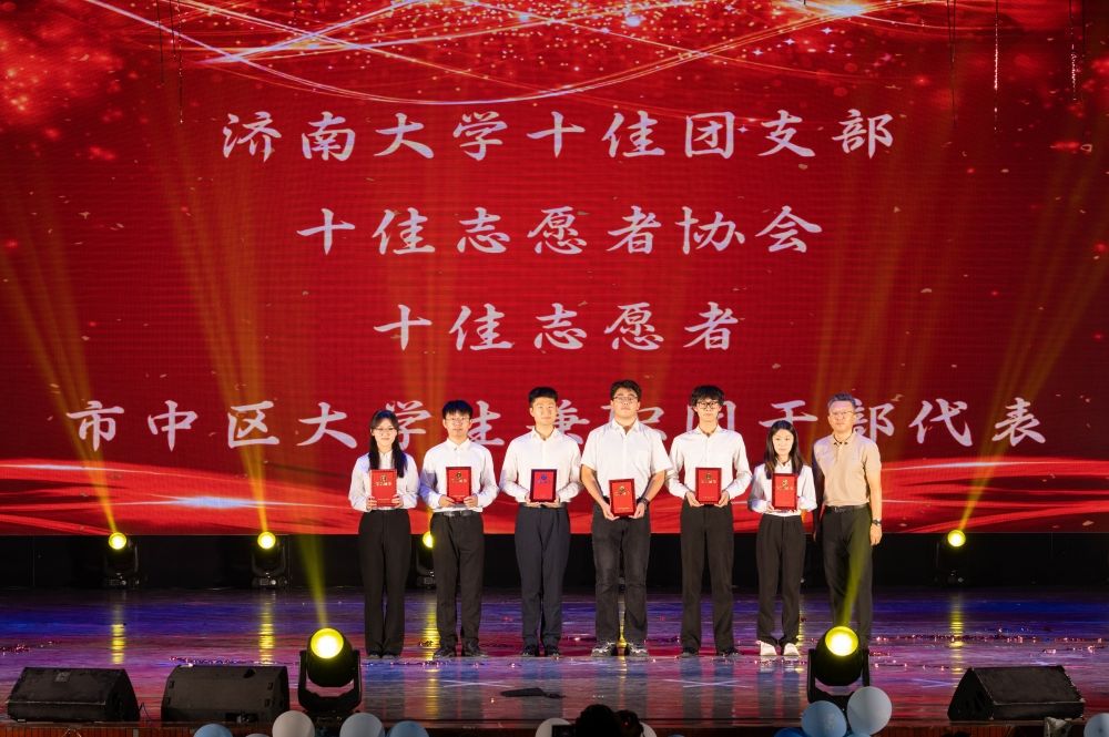 為表彰先進,樹立榜樣,集中展示學院育人成果,學院對表現突出的“朋輩之星”學生代表進行表彰。續鐵為宋健獎學金獲得者頒獎,李強為濟大繁星·求真之星、濟南大學生潤生生涯獎學金獲得者頒獎,黨委保衛部、安全管理處部(處)長李榮光為國家獎學金獲得者代表頒獎,教務處處長、教學質量與評估辦公室主任、招生辦公室主任陳貞翔為科創競賽國家級獎勵學生代表頒獎,校團委書記胡春毅為濟南大學十佳團支部、十佳志愿者協會、十佳志愿者、市中區大學生兼職團干部代表頒獎,黨委宣傳部文化中心主任趙華磊和黨委學生工作部(處)副部(處)長馬杰共同為優秀畢業生代表頒獎。