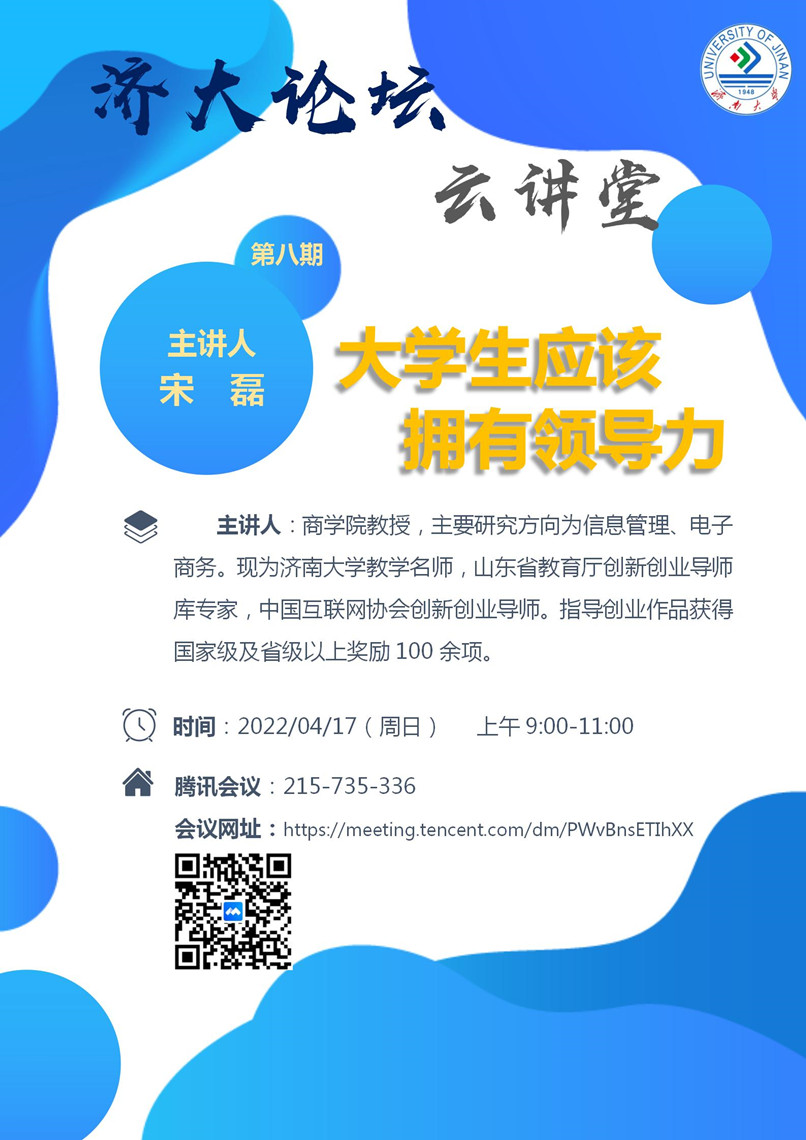 濟大論壇“云講堂”第八期:大學生應該擁有領導力