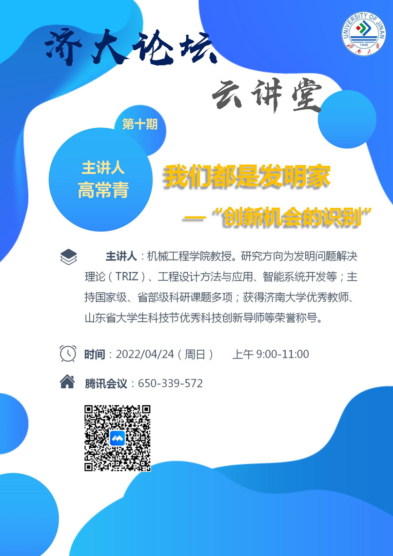 濟大論壇“云講堂”第十期:我們都是發明家 —“創新機會的識別”